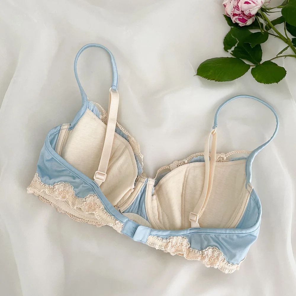 La Perla Vintage Baby Blue Pleated Ivory Lace Bra S M Sororite