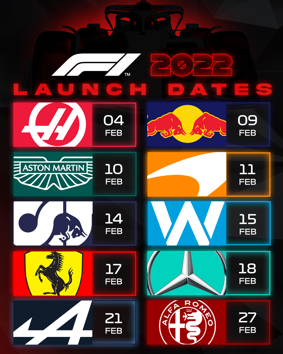Buy Secure Tickets Online. Tuesday 8 February 2022 1055 Lawrence Ostlere. All the F1 launch dates in 2022 Formula 1 launch season is well and truly under way with the Haas F1 Team starting a busy three-week period leading up to the start of winter.